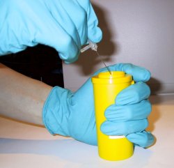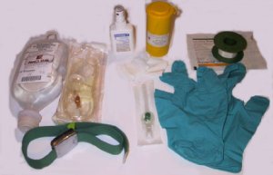 angelegt (Oberarm). Nun sucht sich der Arzt eine geeignete Vene und desinfiziert