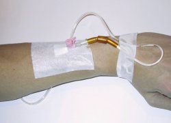 einen venösen Zugang legen kann, muß der Unterarm des Patienten